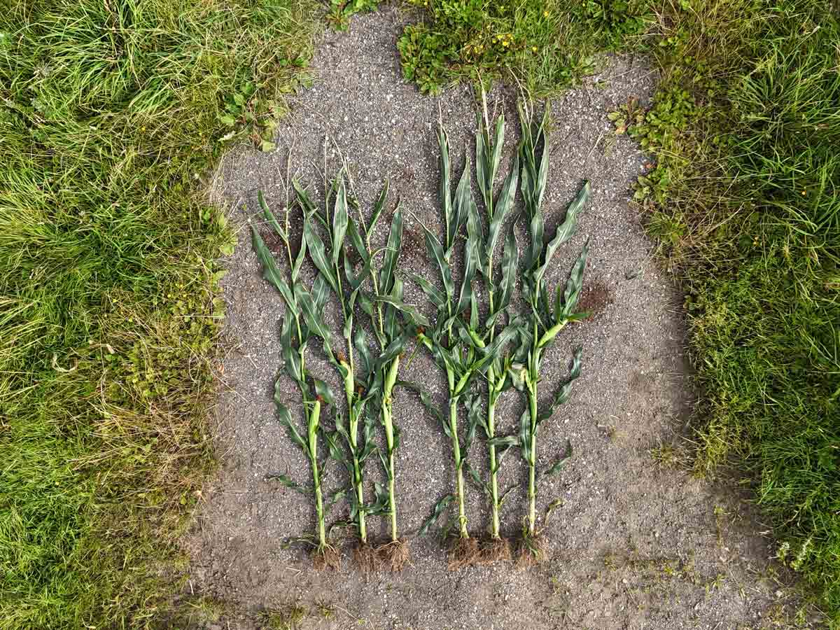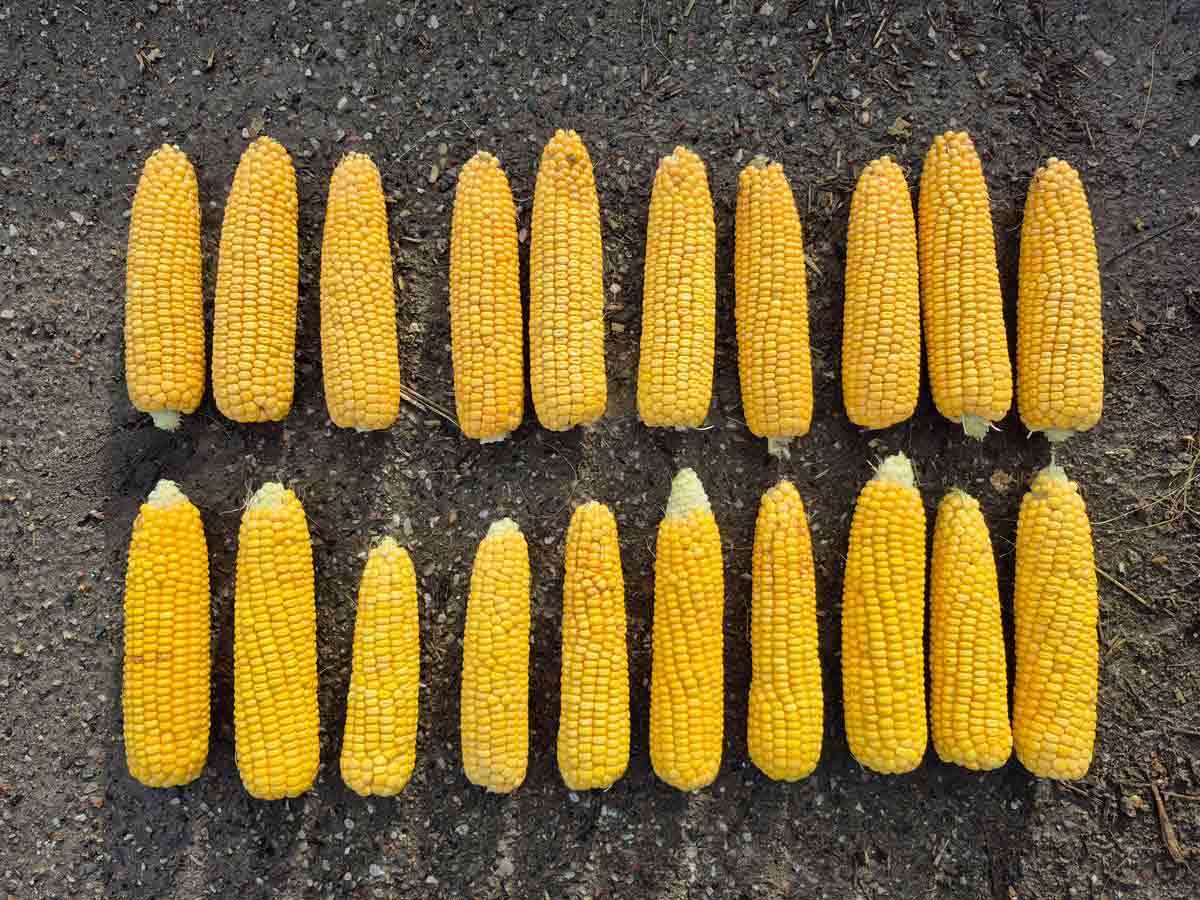 Farmer’s field 2025. Maize cobs with SeedSpeed® (top). Untreated (bottom).