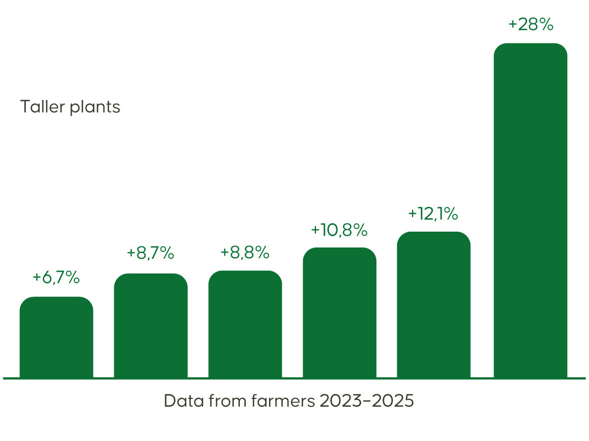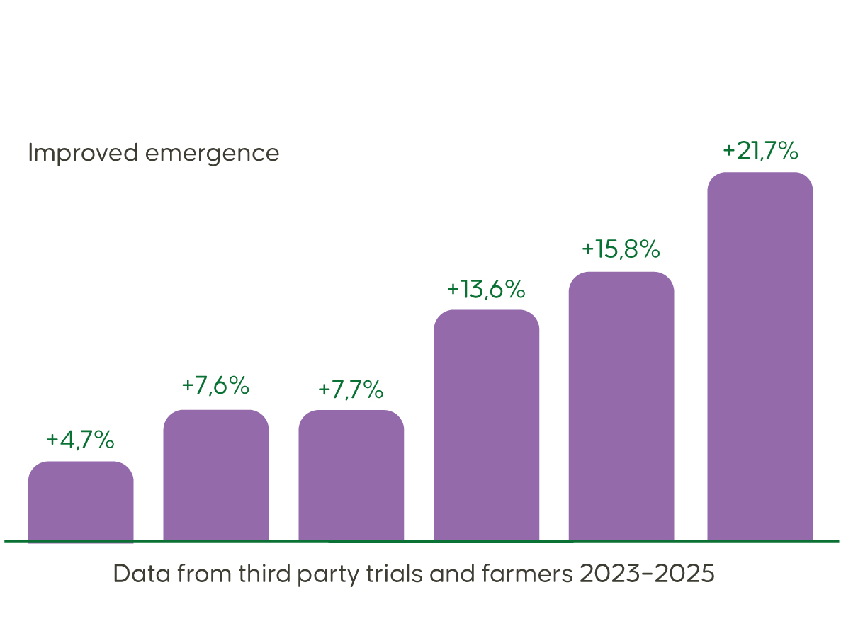 Our biostimulants enhance the availability of soil nutrients during the plant’s early growth phase. This has a positive effect on the emergence of both winter wheat and spring wheat, allowing more plants to grow from the same amount of seeds.